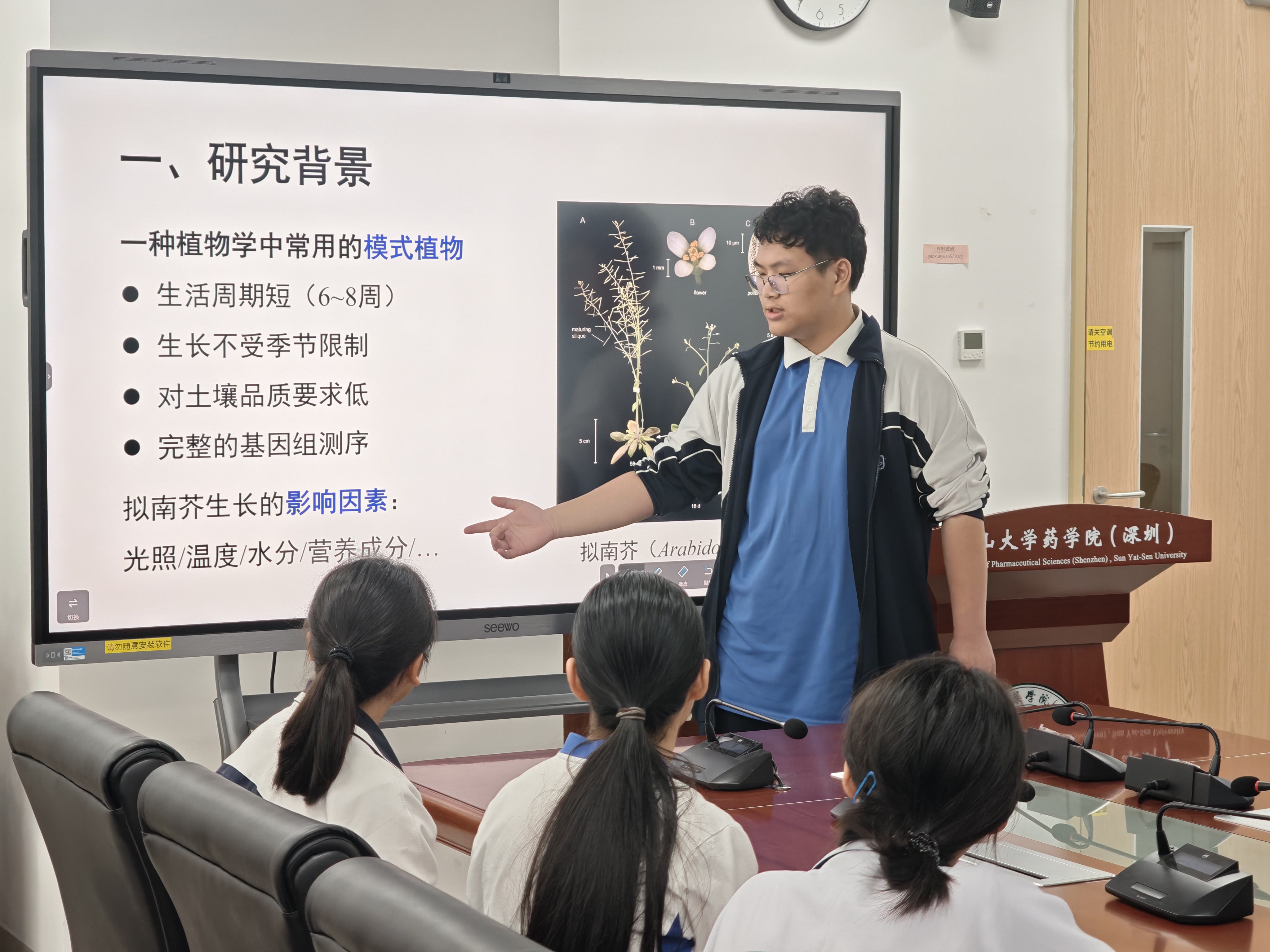 随后,理论化学社社长卢穆清同学简要介绍了学校及社团发展情况。社团成员周锦瑜同学则围绕“Salty Solutions”高中生STEM科学研究课题进行了《稀土元素镧和铈对拟南芥生长的影响》研究分享,展现了实验学子在化学领域的探索热情与初步成果。