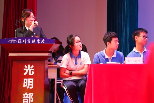 2019年4月15日,光明部迎来了第一届科技节的首个活动——理科知识竞赛。活动于光明部报告厅举行,由高一年级数学林佳彦老师主持,每个班各派出4位同学组成一支队伍代表班级参赛,高一年级全体师生均到场为所支持班级加油助威。