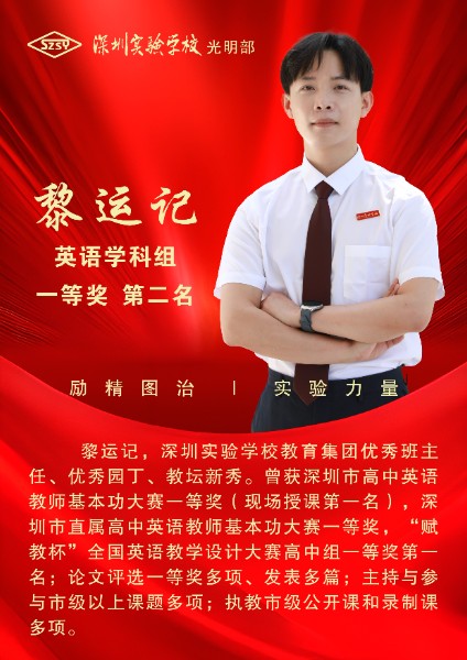 此前,在深圳市教科院于2024年4-5月面向全市各高中学校(含民办学校)举行的新高考背景下深圳市2024年高考模拟试题命题能力比赛活动中,深圳实验学校光明部凭借一等奖5人,二等奖4人,三等奖2人,以全市第二的成绩,获得优秀组织奖。