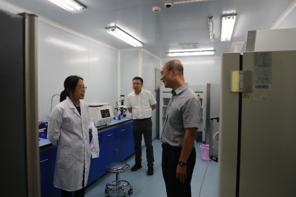 之后,考察团步入设施先进的生命探究实验室,生物学科徐俊峰老师对实验室建设作详细介绍,陈昀博士主要对智慧云实验室进行讲解。