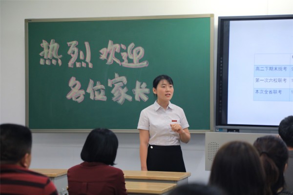 随后,教务处彭修和主任作了以“脚踏实地,精准备考”为主题的发言。彭主任向家长们介绍了高三年级的师资配备方式、复习备考策略、学生辅导方法,希望家长们正确认识校内学习与校外补习的关系、鼓励学生主动学习、引导学生正确认识自己。学生处王果然主任向家长们介绍了年级德育工作。王主任指出高三年级的学生学业成绩稳步向前、文明守礼,但随着学习压力的剧增,身体机能在减弱。为此,学生处明确高三年级德育管理总体原则为身体健康、心理安全、目标教育、道德底线。王主任提醒家长们关注学生的心理健康,及时调整角色,面对现实,充满信心,信任配合,尊重学生。最后,高三年级程继承主任就年级目前的学习情况和存在的问题与参会家长进行了交流。提醒家长们找准学生当前的“坐标”,明确未来的“目标”。接着,程主任对学生的学习现状进行了分析,肯定了学生提前到班、积极提问的良好学风,指出了学优生的目标规划和学困生的畏难情绪等问题,希望家长们从精神上鼓励学生、情感上贴近学生、行动上帮助学生,督促学生养成良好的作息习惯。