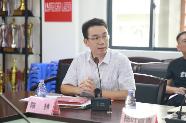 工作室成员代表、深圳大学附属中学的陈林老师作表态发言。陈老师深感要“亲名师而生慧,循大道而作为”,承诺会认真履行工作室的职责,致力于数学专业的发展,团结一致,共同合作,不断创新工作思路,共同前行,有所作为。最后,陈老师祝愿工作室能够扎根蓄力向阳长,繁花似锦结硕果。