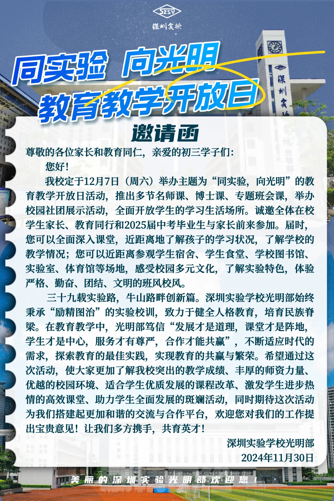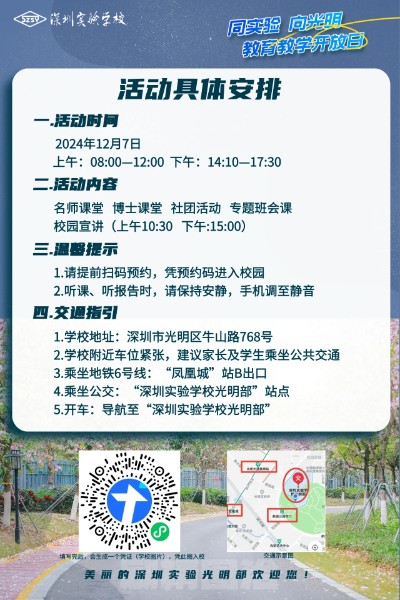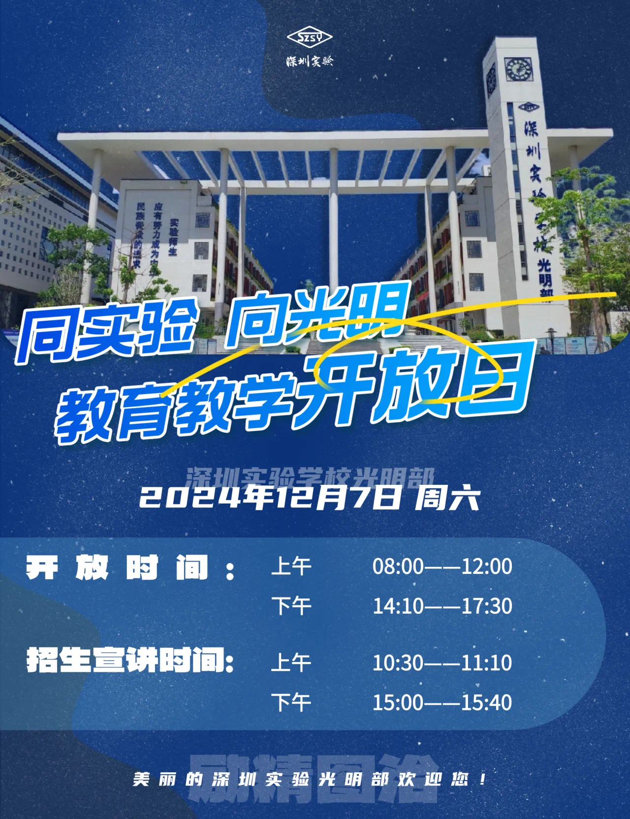 12月7日(周六),深圳实验学校光明部开放日欢迎您!