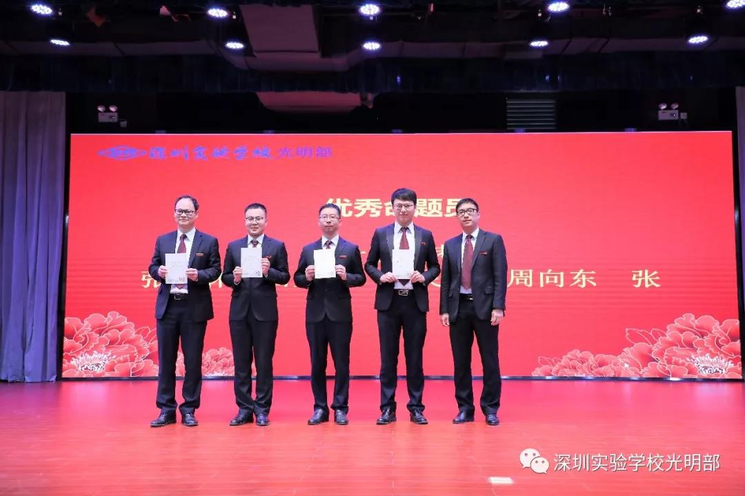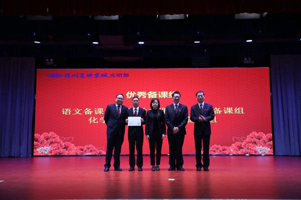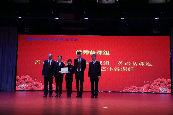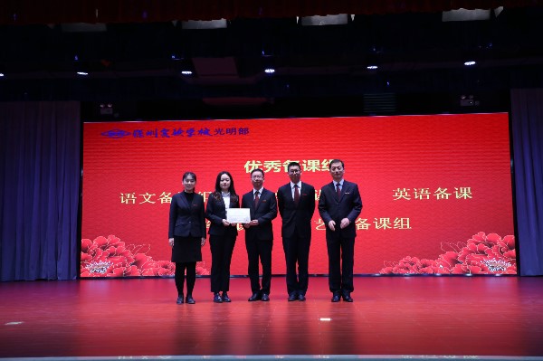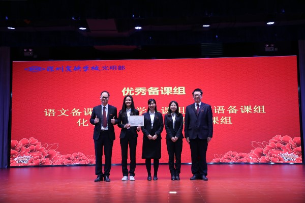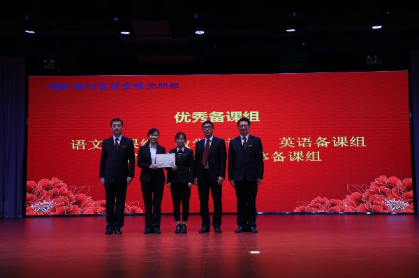 大会首先进行教职工颁奖典礼。一学期以来,光明部各项工作走上正轨,并进入快速发展阶段,这一切都离不开全体教职工的辛勤工作和无私奉献。经研究决定,光明部设立“优秀命题员”、“优秀备课组”、“优秀班主任”、“品质服务奖”和“突出贡献奖”等五个奖项,以此表达对教职工的崇高敬意。