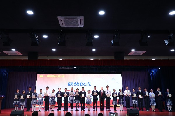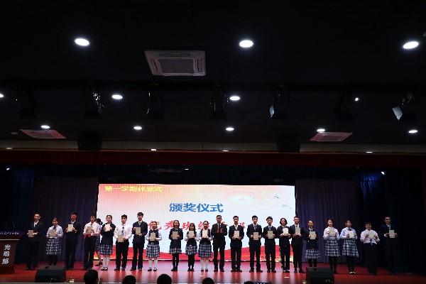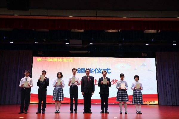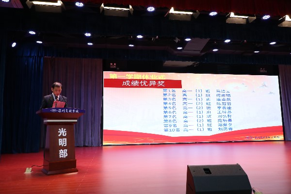 接着,大会由教务处刘盛举主任宣读本学期“成绩优异奖”、“突出进步奖”、“各学科单科优异奖”的表彰决定。学部决定,表彰高一年级马浩云、傅雨晴、康奕然、陈冠羽、李荟瑜、王梓苏、刘弘轩、苑轩昊、郑楚夕、刘思睿、曹瑞虹、彭际恒、李畅宇、范美萱、宋远铎、许北辰、周沈宸、刘晓辰、王炜民、汪文骞、谢明章等21名同学,在第三阶段考试中的优异表现,教务处刘盛举主任为获奖同学颁发“成绩优异奖”。