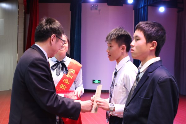 决定表彰高一年级叶晨、赖娴、梁芮鸣、谢子烨、钟烨、王若天、伍羿舟等7位同学,并颁发“突出进步奖”,由教务处彭修和主任颁发奖状。