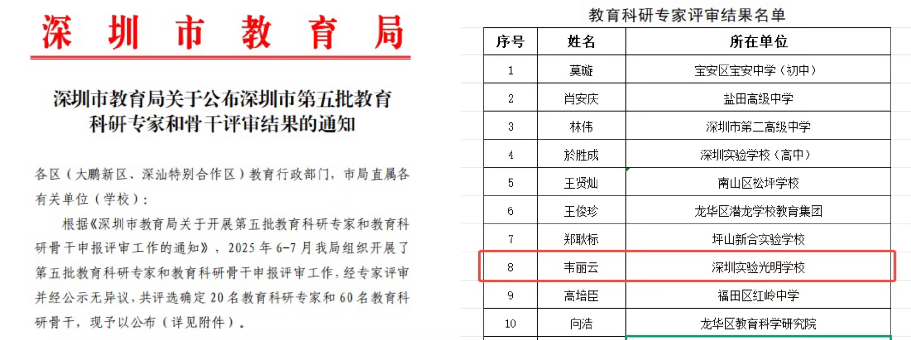 我校初中数学科组获评“深圳市中小学数学教育高质量发展项目科组”,这已是初中数学科组继2024年荣获“深圳市中小学数学教育高质量发展实验科组”后,再度摘得市级数学教育标杆性荣誉!两项殊荣的相继加冕,不仅是科组深耕教育教学的实力印证,更是学校育人品质持续升级的生动注脚。