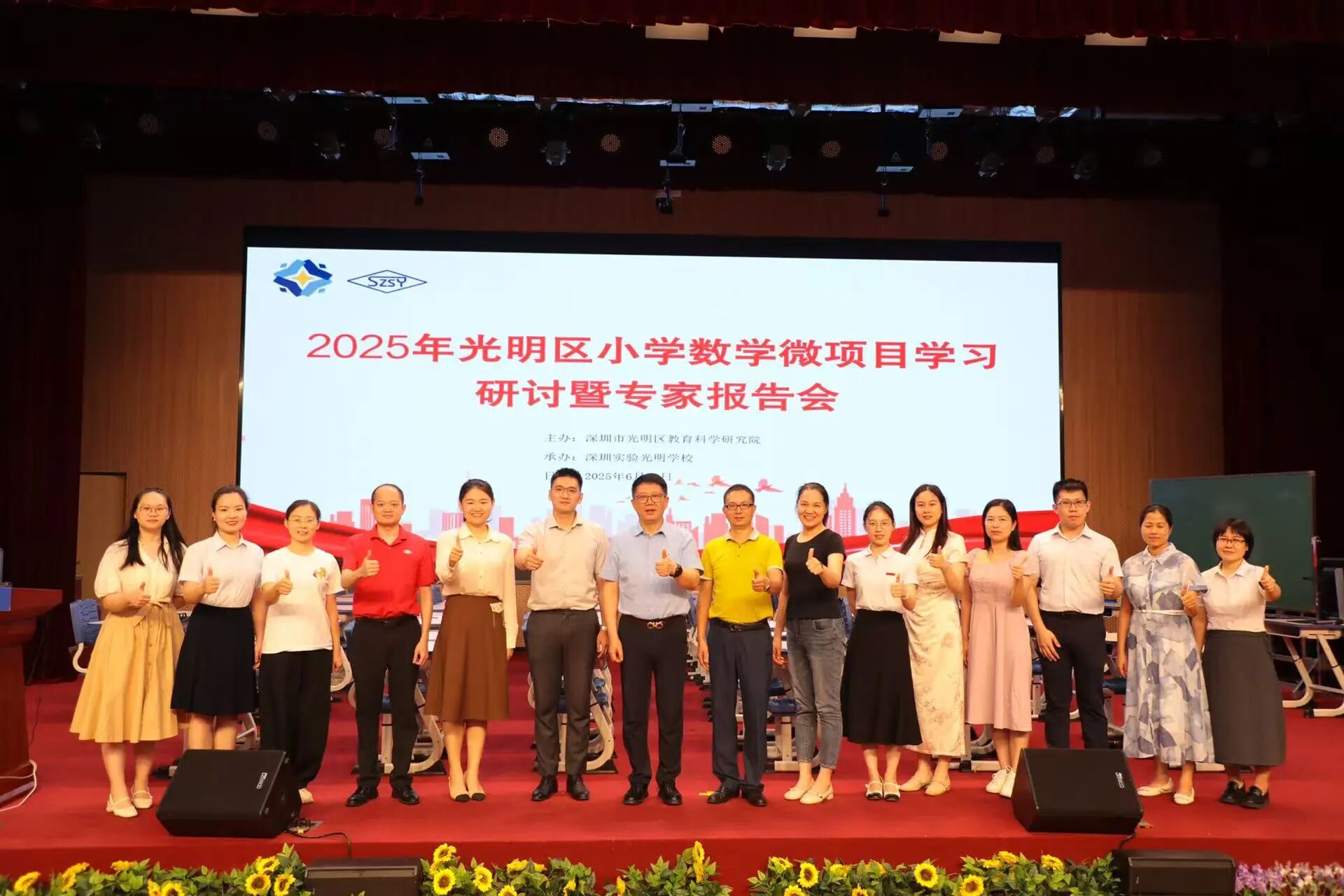 6月11日下午,光明区小学数学微项目学习研讨暨专家报告会在深圳实验光明学校成功举行。光明区教科院院长黄爱华、小学数学教研员吴鹏圣,深圳实验光明学校校长朱灵辉及1500余名教师,聚焦“微项目撬动课堂:一节课玩一个项目”主题,共探新时代小学数学课程教学改革背景下的项目式学习实践创新与区域发展。