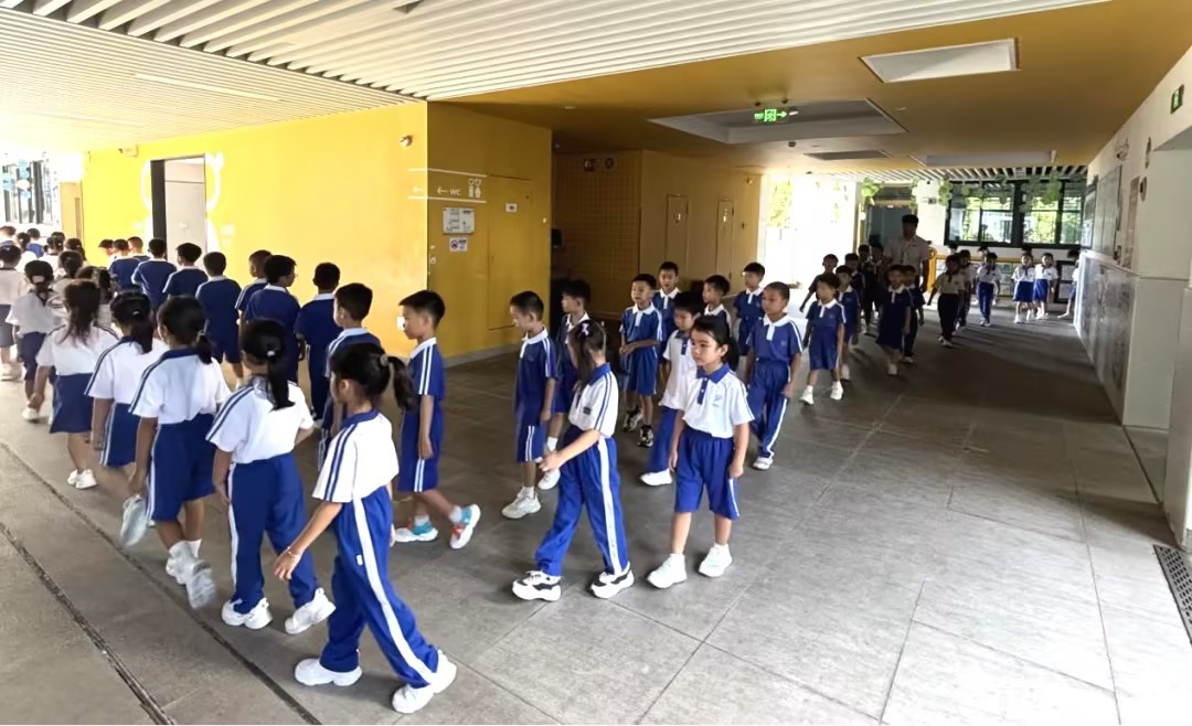 姓名牌领取处格外热闹。学校提前为四个班级设计了不同颜色的姓名贴,孩子们找到自己的班级,郑重贴上专属姓名牌。小小的姓名贴,是“小学生”身份的第一次认证,孩子们摸着胸前的名字,眼神里满是自豪:“我是深圳实验光明学校的小学生啦!”