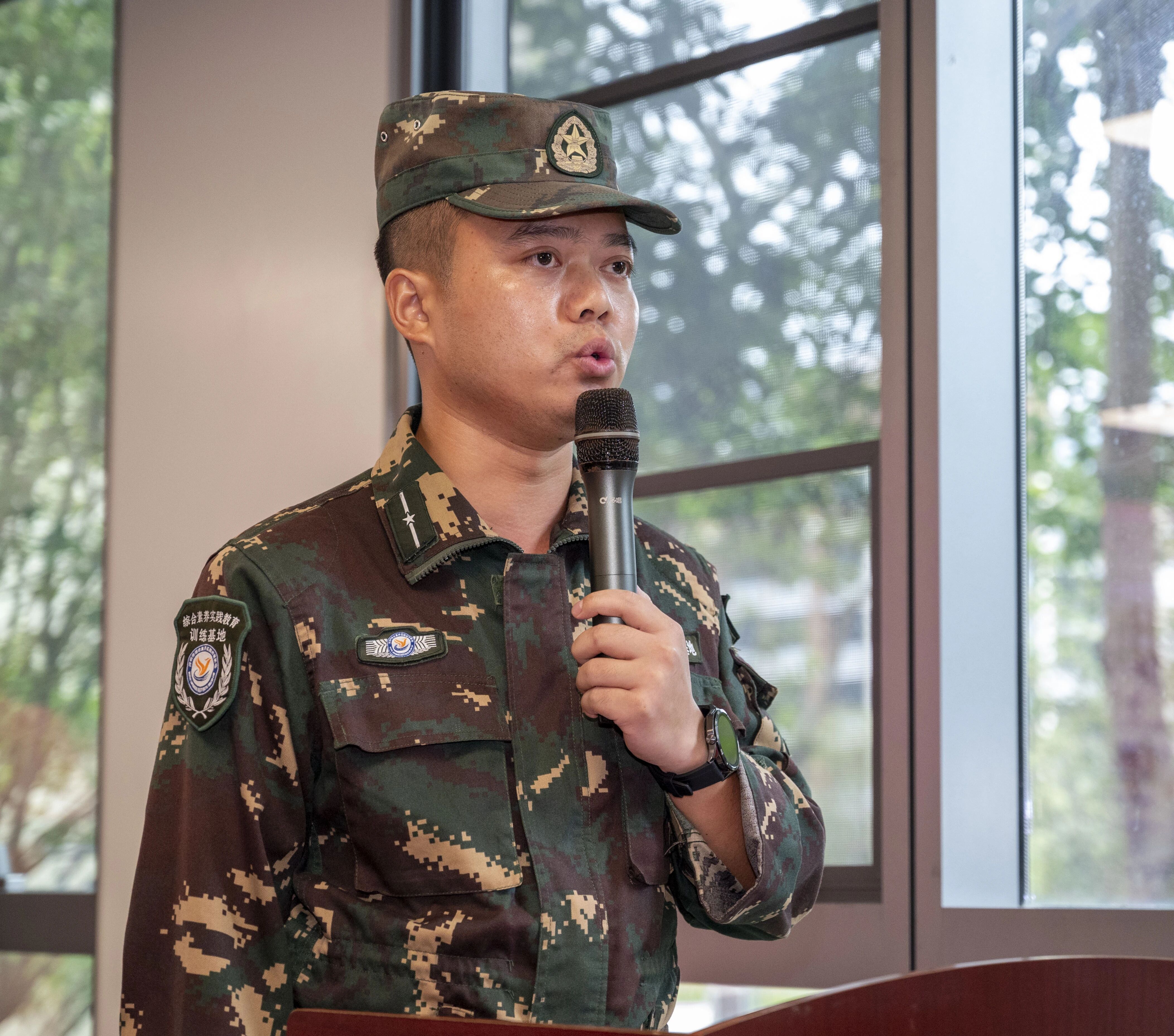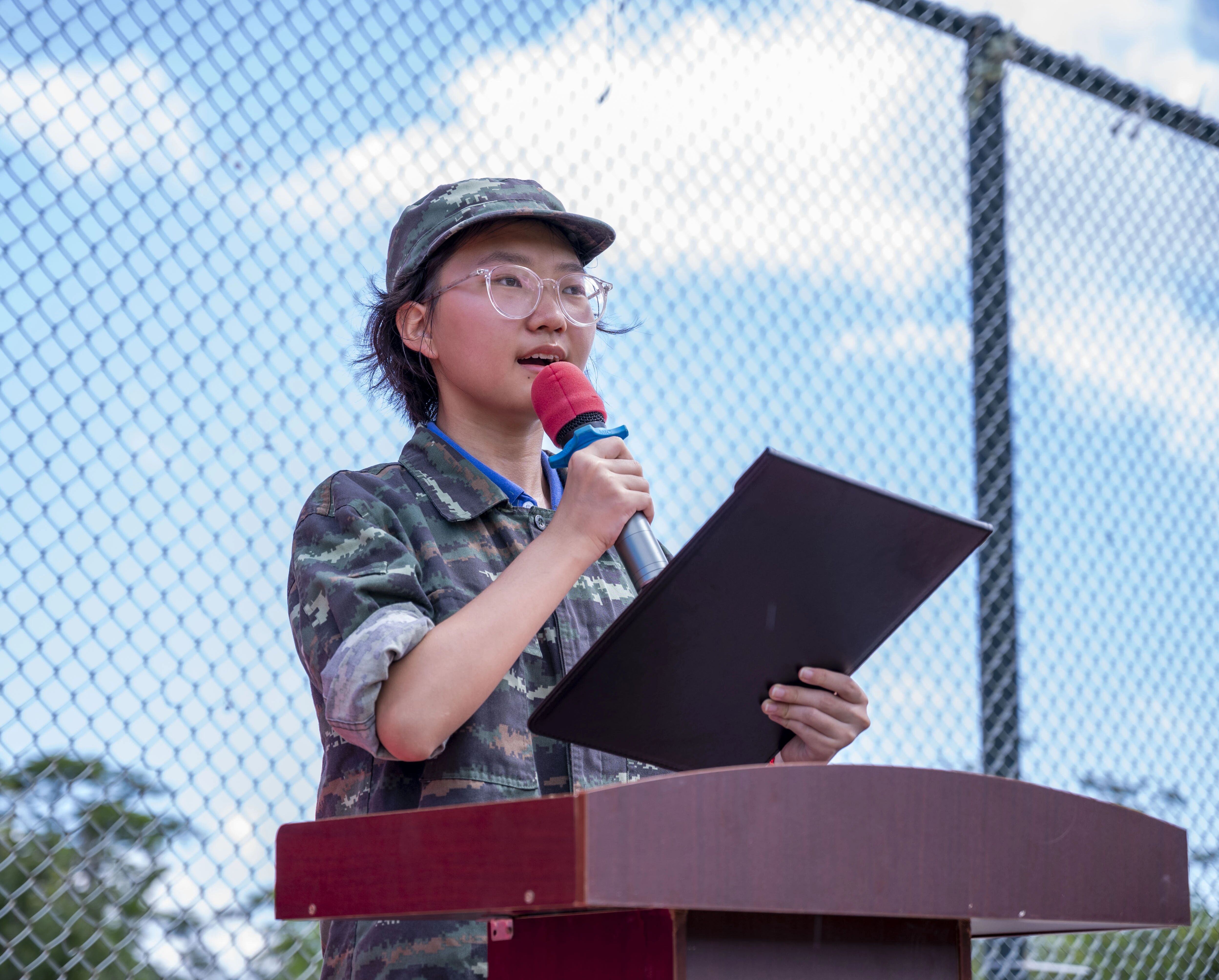 来自八年级(1)班的赵晨瑞作为学生代表发言。赵同学分享参与活动的收获与感悟,言辞真切,感恩教官与老师的辛勤付出。