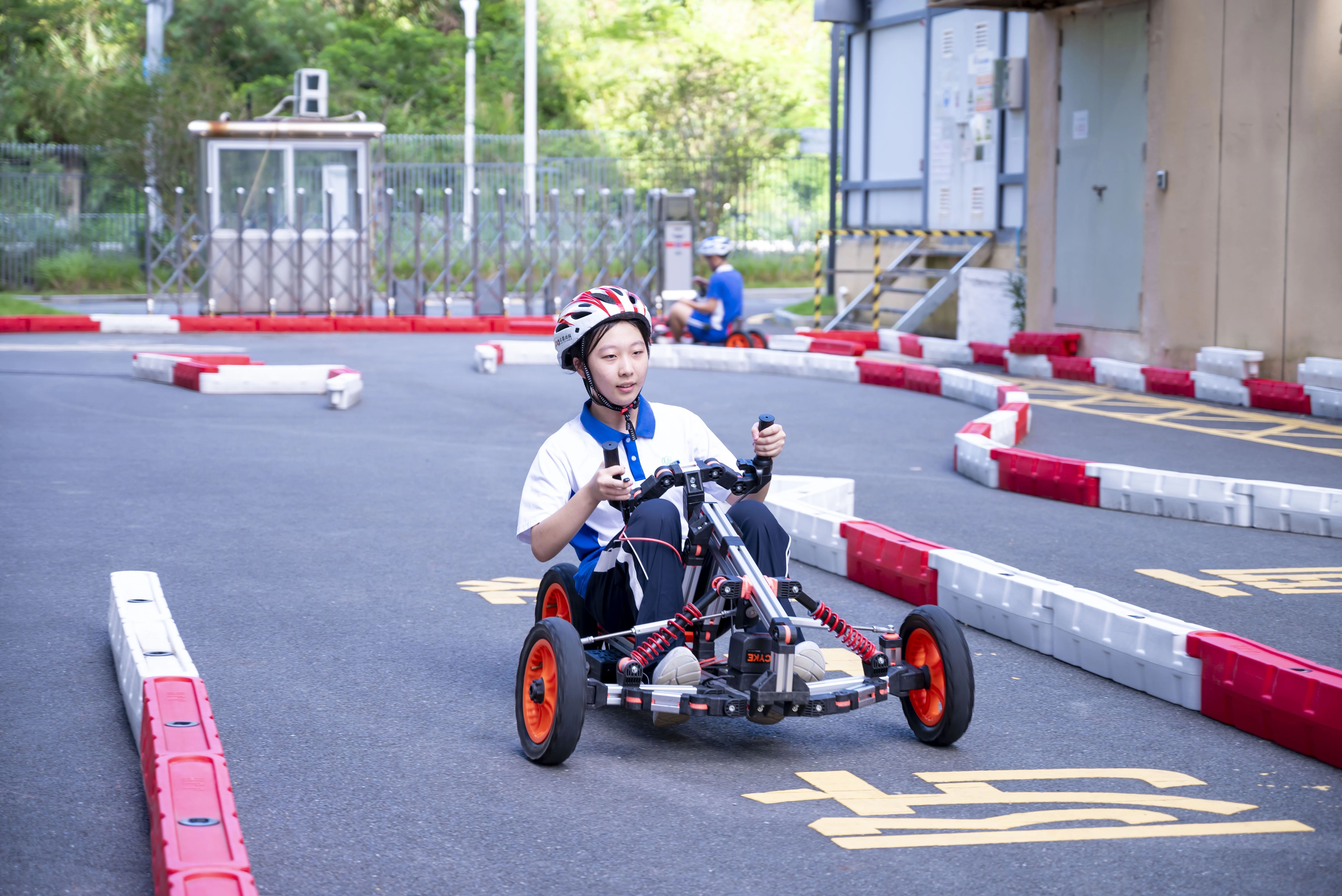 F1赛车在阳光下闪烁,轮胎压过赛道,同学们化身“赛车手”,追逐、超越、冲刺无时无刻都在上演着。