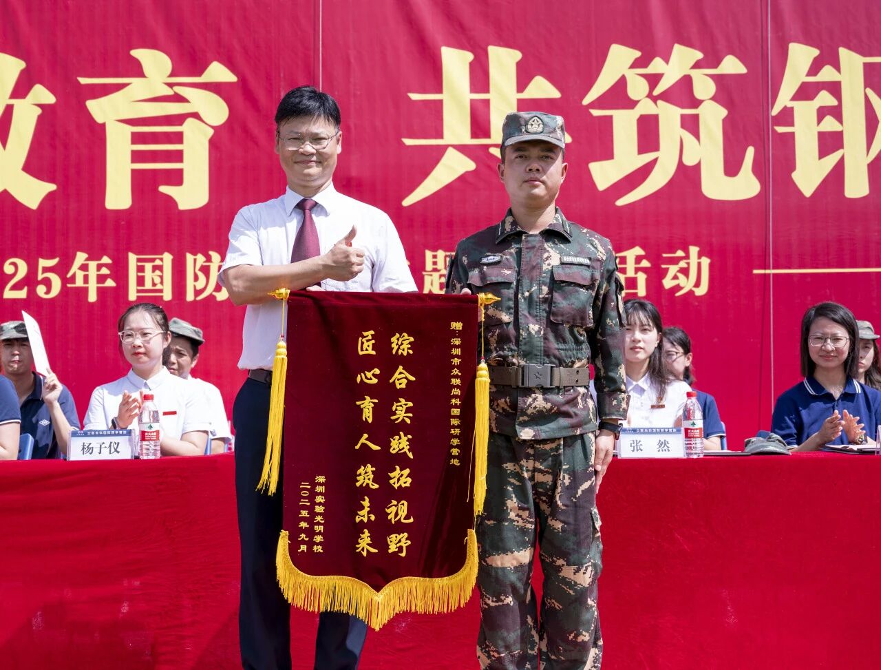 朱灵辉校长代表校方向深圳市众联尚科国际研学营地赠送锦旗,表达对基地支持与服务的诚挚谢意。
