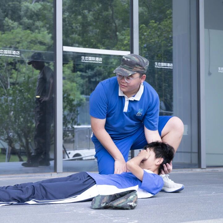 在教官指导下,大家快速掌握环形包扎、“8” 字包扎等方法,细心为 “伤员” 固定伤口。