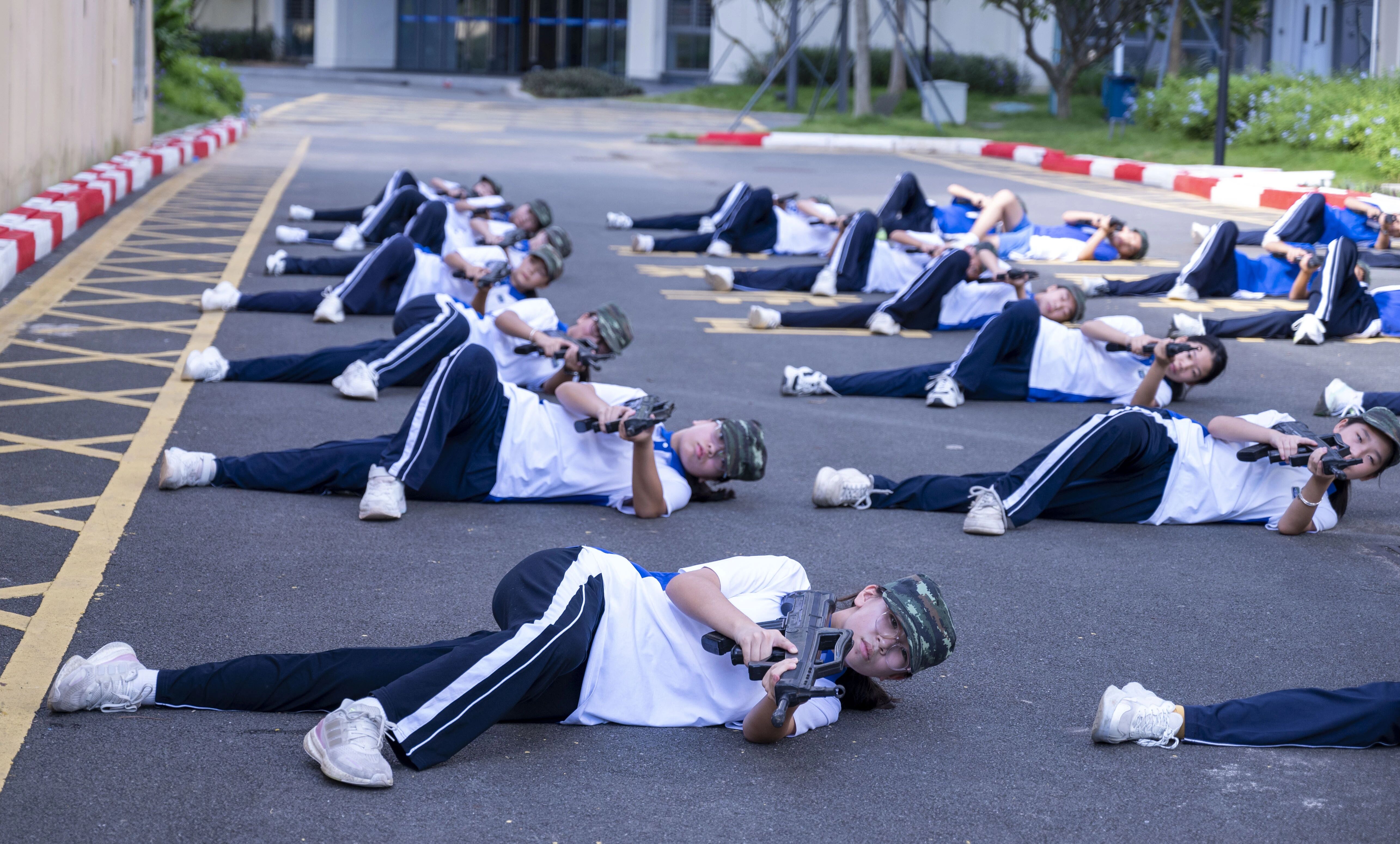 战术方阵训练里,同学们弯腰屈膝,手持模拟武器,在 “战场” 上快速跃进、卧倒。虽然是模拟训练,大家却丝毫不敢懈怠,眼神专注,动作敏捷。