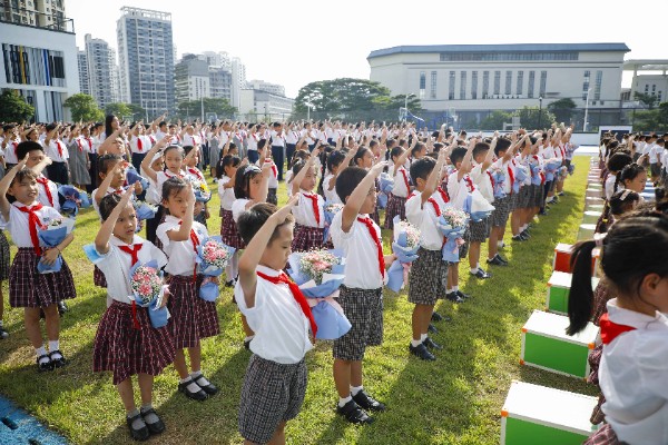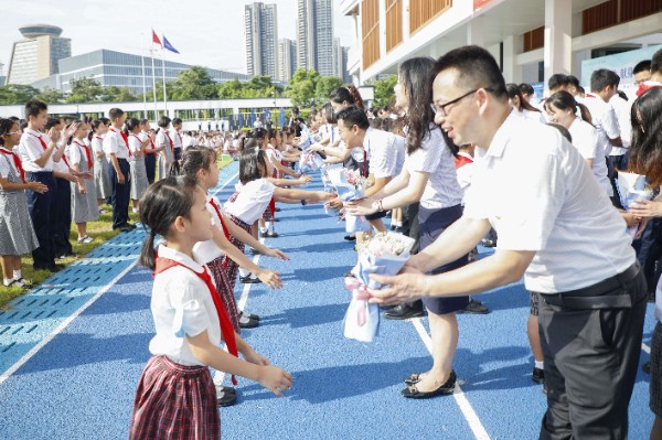 滔滔山水有时尽,绵绵师恩日月长。9月10日上午,深圳实验光明学校“一声先生,献身一生”第37个教师节庆祝大会在学校操场隆重举行,温馨的祝福和开心的笑声充满了校园的各个角落。全体师生身着实验校服,笔挺地站立在操场上翘首以盼大会的到来。