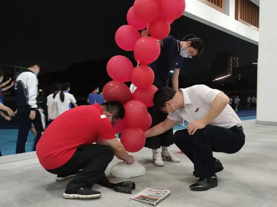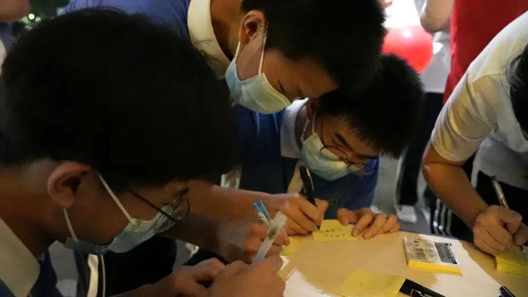 学弟学妹们提前悄悄演练,只为用荧光辉映星光,为你们加油呐喊:“韶华不负,惜时如金,敢与金鸡争晨晖;书山学海,甘之若饴,誓同梧桐共比高。”不希望你们把一次考试当作人生成败的赌注,只想让你们在年少时体会一次全力以赴。夜以继日和你们并肩战斗的老师们,为你们送上最真挚的祝福。将嘱托牢记心间,将祝福紧握指尖。阔步迈向“成功门”的你,定已装满必胜的信心和信念。