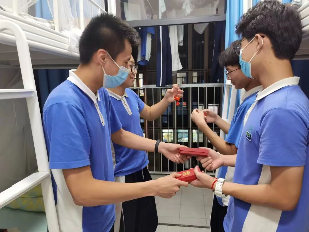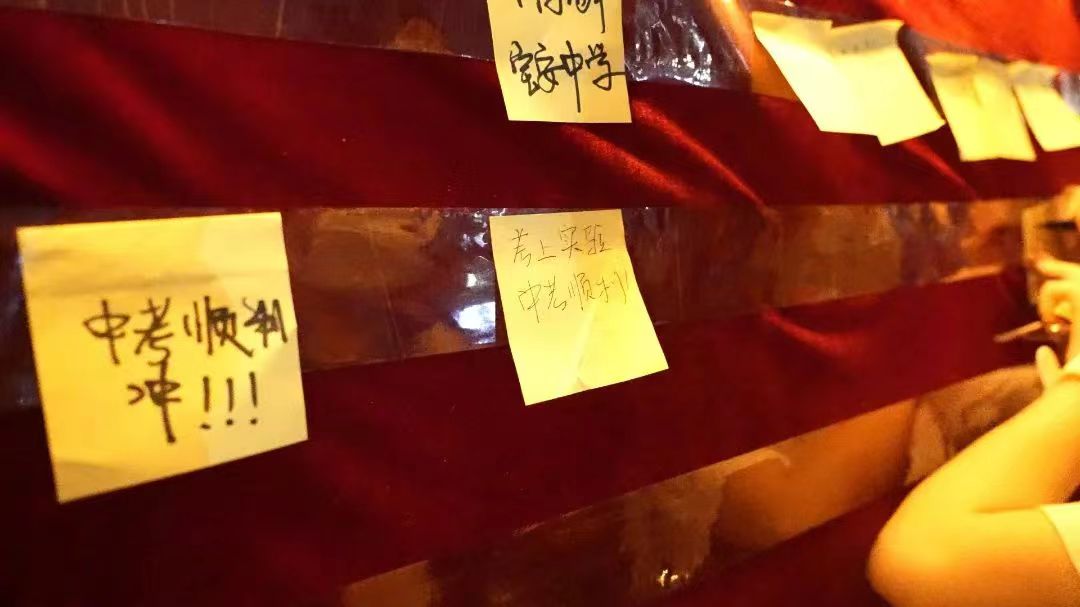 宿舍床头静静等待的还有来自父母的爱。一句句寄语、一份份牵挂和期待,在九年级孩子的心头,汇聚成感恩的泪水,转化为不竭的动力。