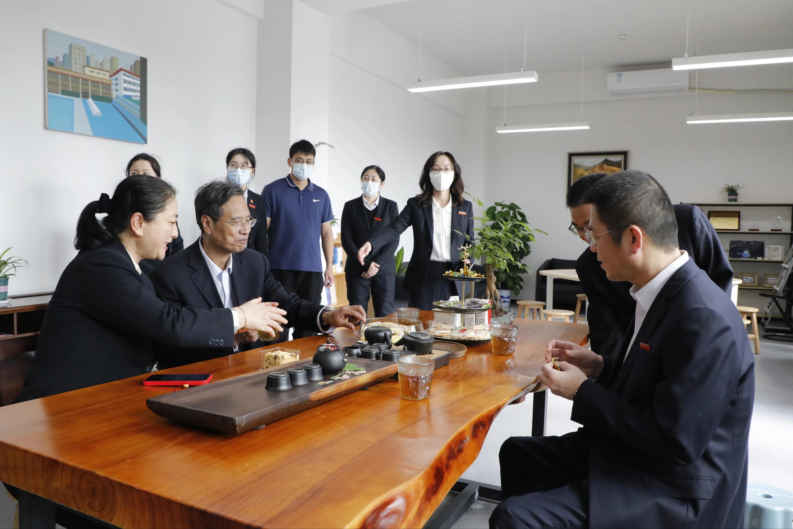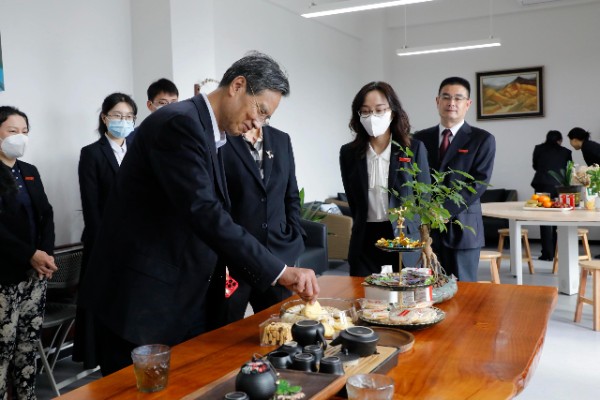 在“实光·里”教工之家,衷校长品尝着实光餐厅自制的小点心,他对学校为改善教师办公、教研环境而做出的努力和精心准备表示高度的认可。