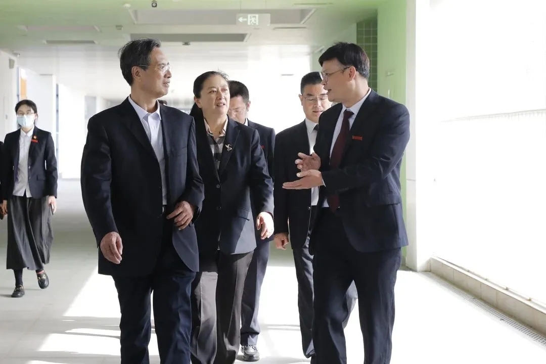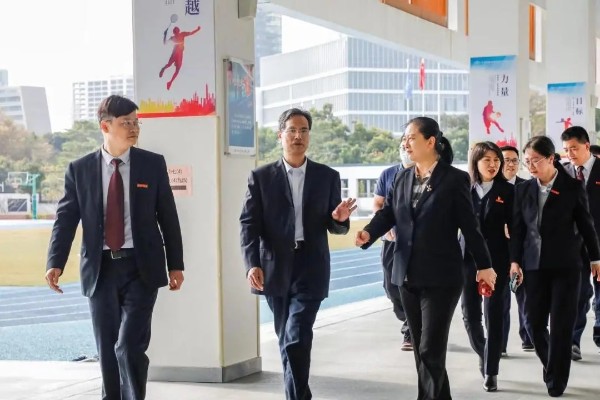 春暖花开,启春相见。2月8日上午,深圳实验学校党委书记、校长衷敬高,深圳实验学校副校长、中学部执行校长龙萍,深圳实验学校副校长、深圳实验学校高中园校长李震宇,深圳实验学校副校长、高中部执行校长邓旭,深圳实验学校副校长、坂田校区执行校长王喜峰和集团办公室主任张楠一行6人到深圳实验光明学校走访慰问师生,视察指导学校开学工作。朱灵辉校长及全体行政干部陪同视察,并详细汇报了学校开学工作情况。