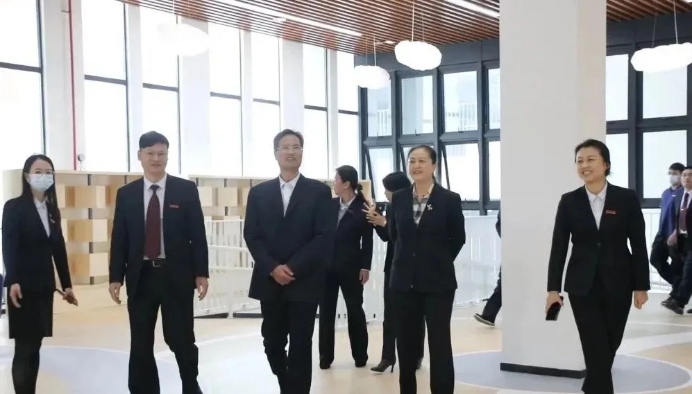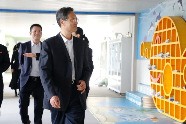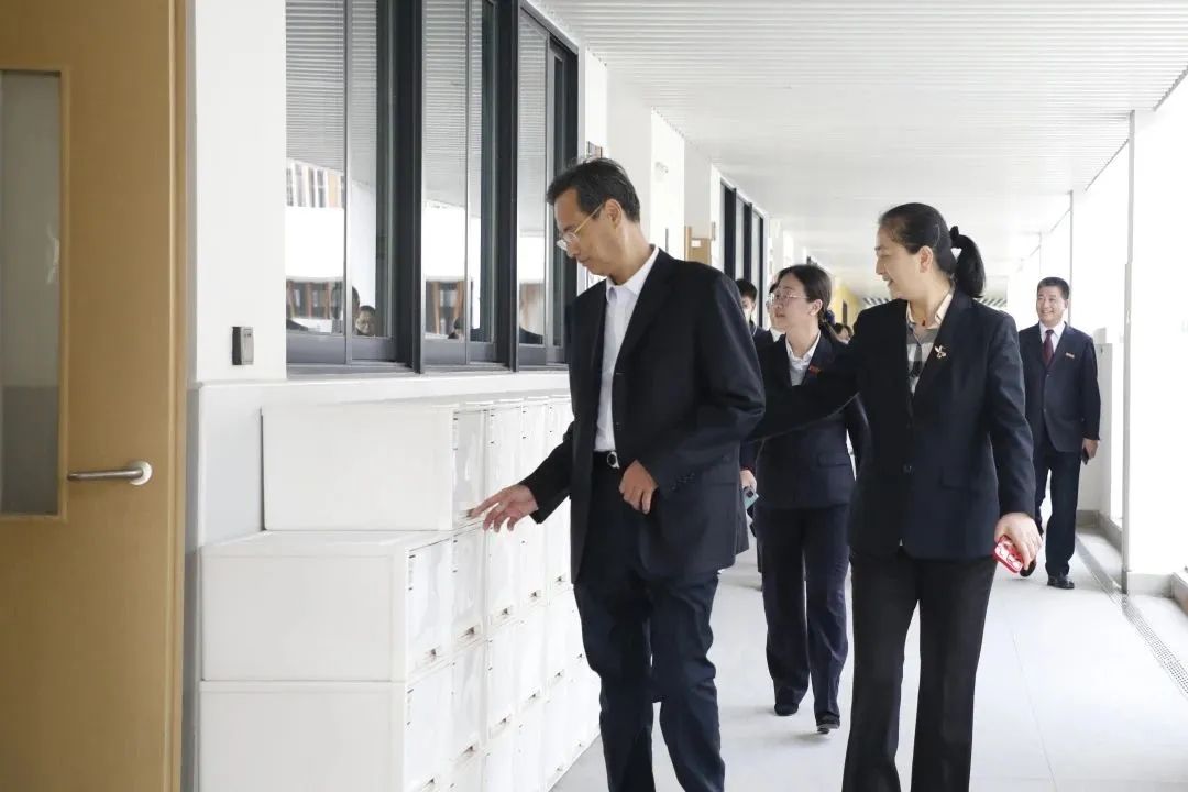 衷校长一行来到教室外关注着孩子们上课的情况,对学生的活动区域等情况进行详细的了解。在新建成的图书馆中,衷校长指示要尽快完成图书上架,让孩子们充分享受阅读的快乐。