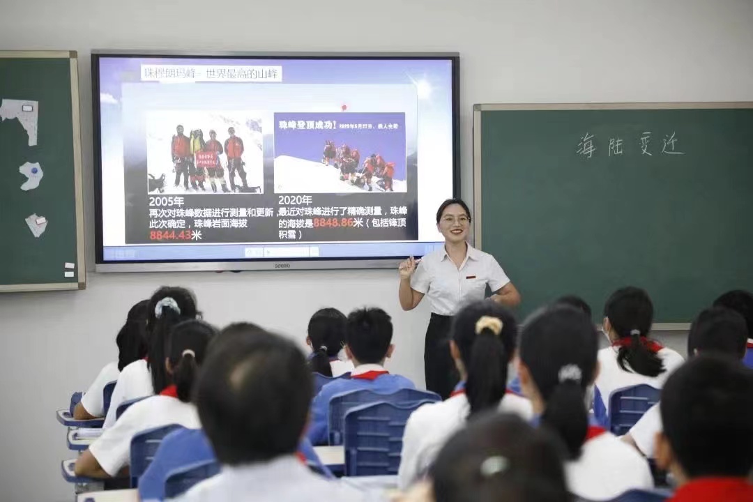 本次活动是我校地理科组全体教师经过集体备课、磨课后向全区地理教师呈现的课堂实例,主讲老师为阿苏尔古木老师,主讲内容为湘教版七年级上册第二章第四节《海陆变迁》。本课以国家队测量珠峰为情境,引导学生结合生活经验,举例证明地表是在不断运动和变化的。接着,通过板块拼图游戏,引导学生理解板块构造学说。同时,借助小组合作学习模式,培养学生上台展示及语言表达能力。本节课通过生动直观的图片和实验操作,学生能由表及里地发现地理规律,总结地理原理。
