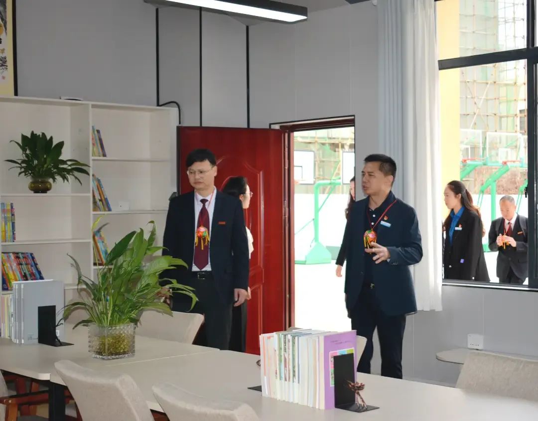 在卢奂帆校长指引和解说下,朱灵辉校长一行参观了田阳区第五小学的走廊文化、清廉亭、食堂及红烛书吧等地方。