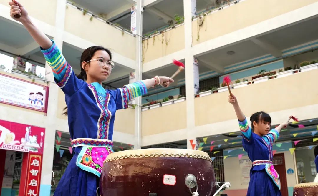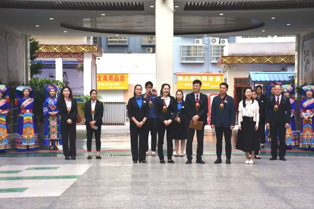 百色市田阳区第五小学卢奂帆校长带领全体领导班子及学校山歌队的学生热情迎接远道而来的客人。