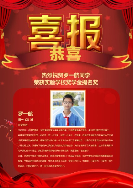 他沉稳、认真、努力,如同一棵木棉,扎实吸取知识的养分,努力向更高更广阔的天空生长。课堂上,看到他睿智而渴望知识的眼神;作业本上,看到他思路的清晰和思维的深度。加油吧,少年!相信未来的你,必将超越今天的你,焕发熠熠光彩!他就是七年级(2)班罗一航!
