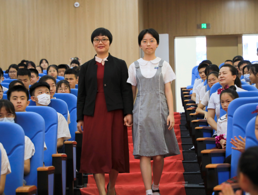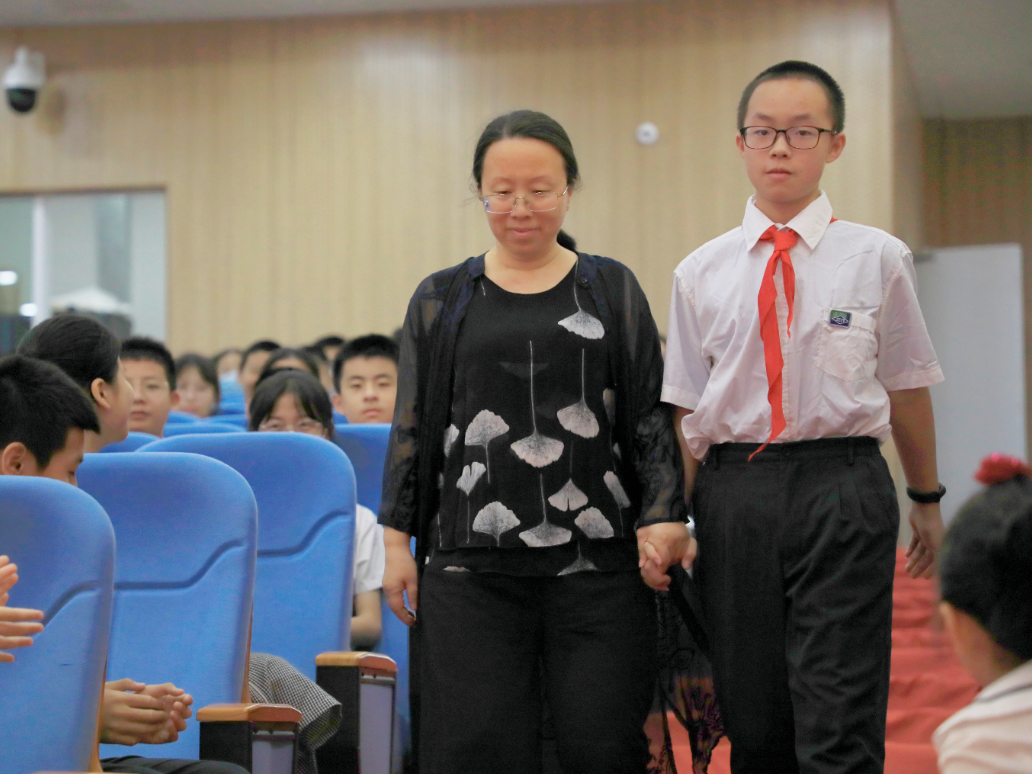 随后,卢浩锦同学的母亲作为家长代表发言,她首先表达对学校的感谢,并强调家庭教育在孩子成长过程中的重要性。她认为家长应为孩子营造出平等有爱的家庭氛围,只有孩子感受到自己是被尊重、被关爱的,才能切实体会到学习与生活上的点滴快乐。