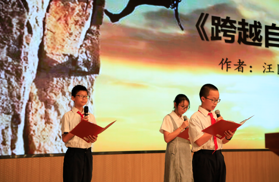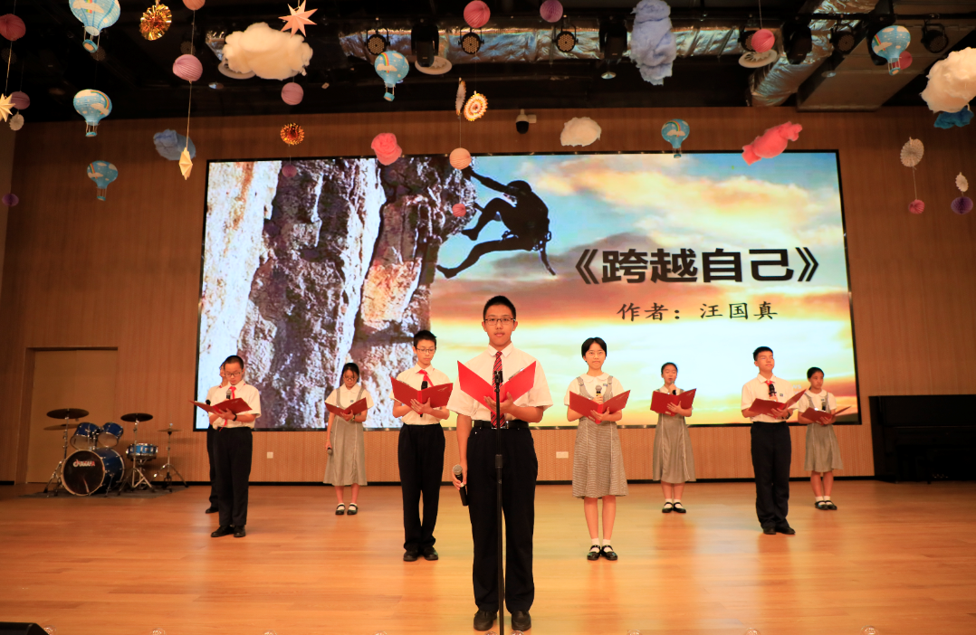 紧接着,“实验学校奖奖学金”和“实验学校奖提名奖”获奖者们为全校师生献上了精彩的诗歌朗诵节目。一首汪国真先生的《跨越自己》激励着同学们超越自己,一首泰戈尔的《梦想》指引着同学们努力前进的方向,一首汪国真先生的《山高路远》勉励着同学们不畏艰难勇攀高峰。全场师生都聚精会神地聆听着他们那些关于梦想的声音,从慷慨激昂的声音中汲取前进的力量。