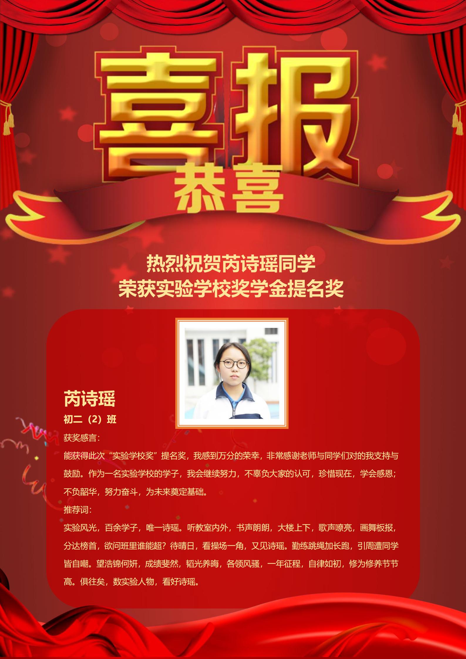 实验风光,百余学子,唯一诗瑶。