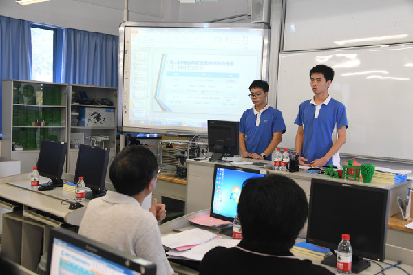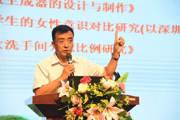 《真随机数生成器的设计与制作》课题负责人彭浩然、组员张哲玮为了解决计算机伪随机数安全性的问题,结合创客思想和工具,利用各类传感器和Arduino开发平台,设计真随机数生成的算法;《当代中学生的女性意识对比研究》课题负责人何梁瑾、组员颜子鹏从课题选题、研究背景、研究内容、调查方法及分析等方面展开陈述,将问题具体化,制定详细而明确的调查问卷,引起了在场师生的广泛兴趣。《学校男女洗手间分配比例研究》课题负责人周婉芸通过问卷调查学生对洗手间比例的看法,然后对洗手间排队问题进行数学建模,有一定的研究深度。