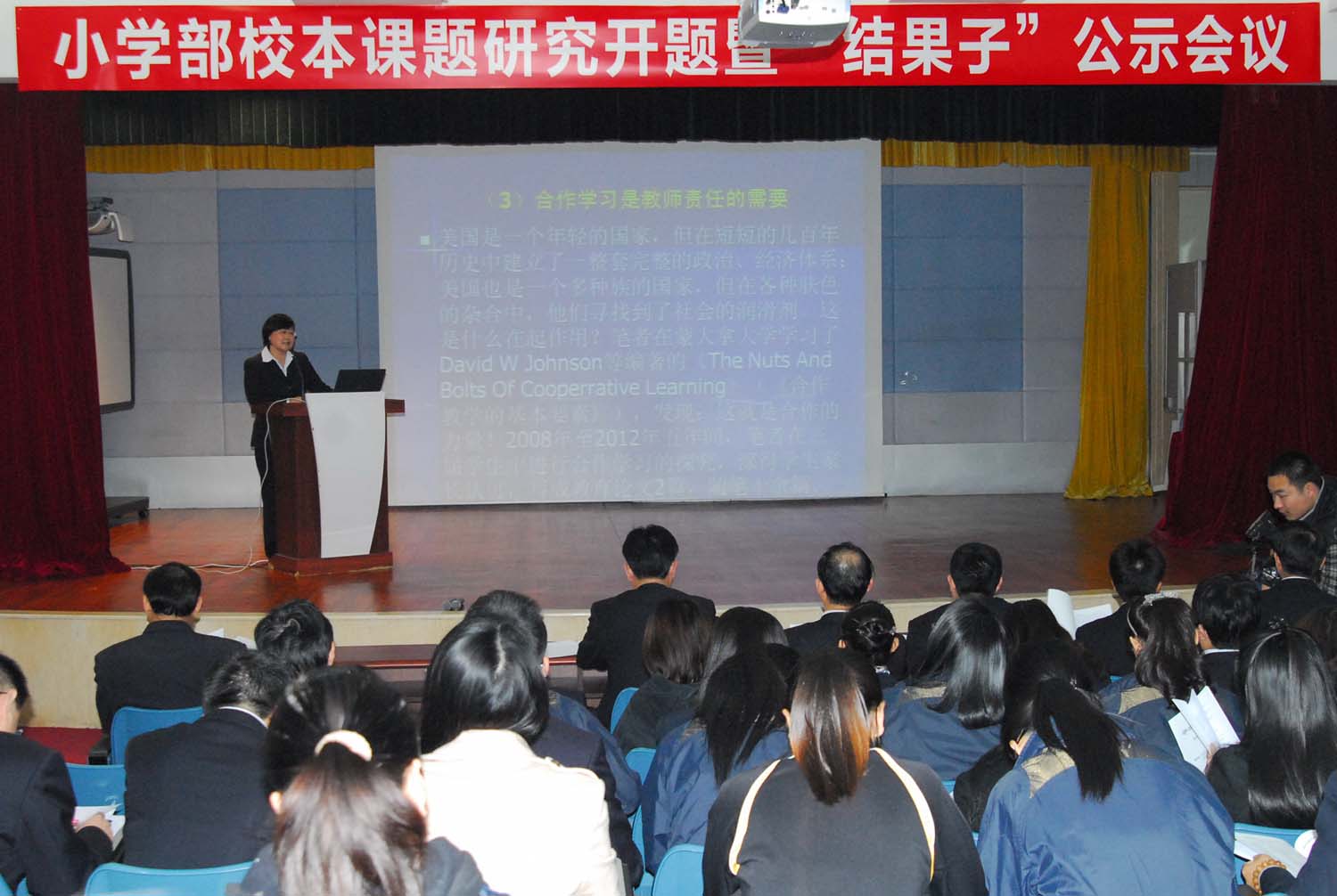 小学部的这次课题研究开题会暨“结果子”公示会,是在集团优化育人模式、力推校本研究、打造名师集群的大背景下召开的,会议有设计、有氛围、有震撼,力求今后让干的人心情更舒畅、目标更明确,让看的人围观、喝彩、加盟、得益,全面提升小学部的办学质量、大力深化小学部的办学内涵,让人民对我们的办学更加满意。(文 /教务处 图 /电教室)