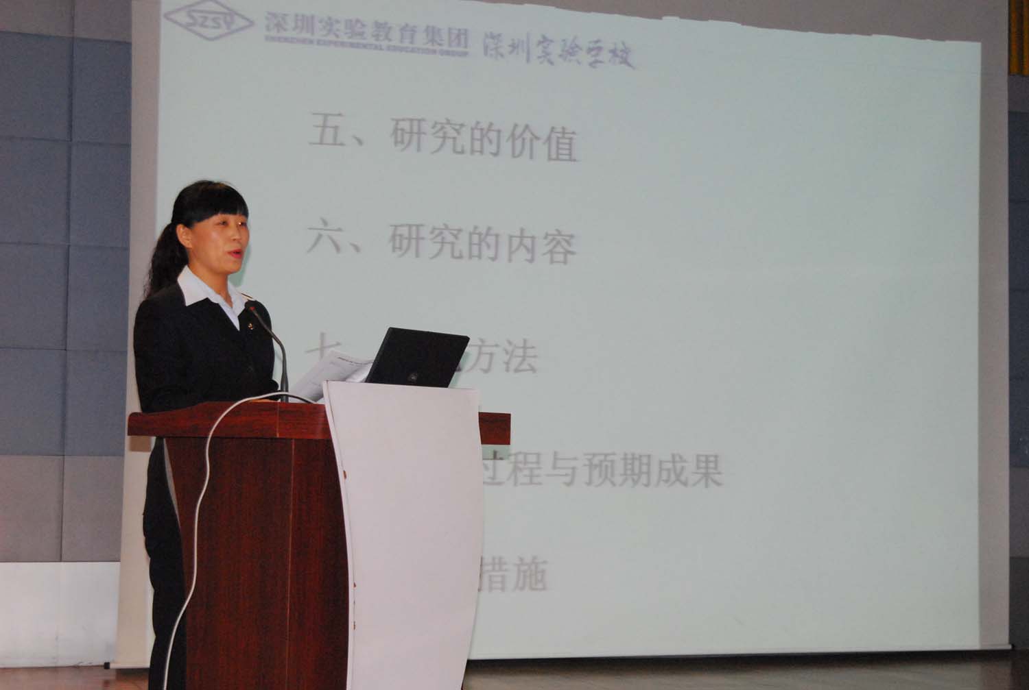 开题会上,被集团教育科研部立项的四个校级课题的组长李莹洁、吴立新、叶伟生、周洁分别就其领衔的语、数、英课题宣讲了开题报告,这四个课题是:语文学科“转变学生学习方式,促进学生小组合作学习的形式、方法与创新研究”、数学学科“转变学习方式,促进学生自主探究学习的形式、方法与创新研究——促进学生数学课堂自主探究学习的方法研究”、数学学科“转变学生学习方式,促进学生学会学习的形式、方法与创新研究——在小学数学教学中创建学习共同体的研究”、英语学科“塑造教学的开放模式——小学英语EAP课堂的成因、构架及效应研究”。集团教育科研部田国生主任在讲话中评价四个开题报告都“有背景、有依据、有措施”,“为课题研究的正常开展开了一个好头,奠定了一个有一定高度、扎实牢靠的基础。”