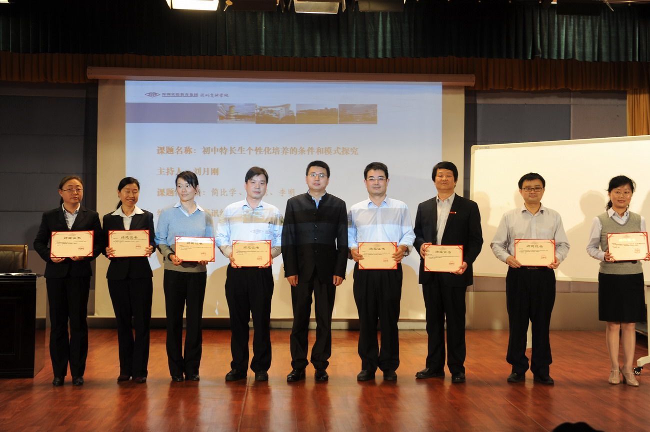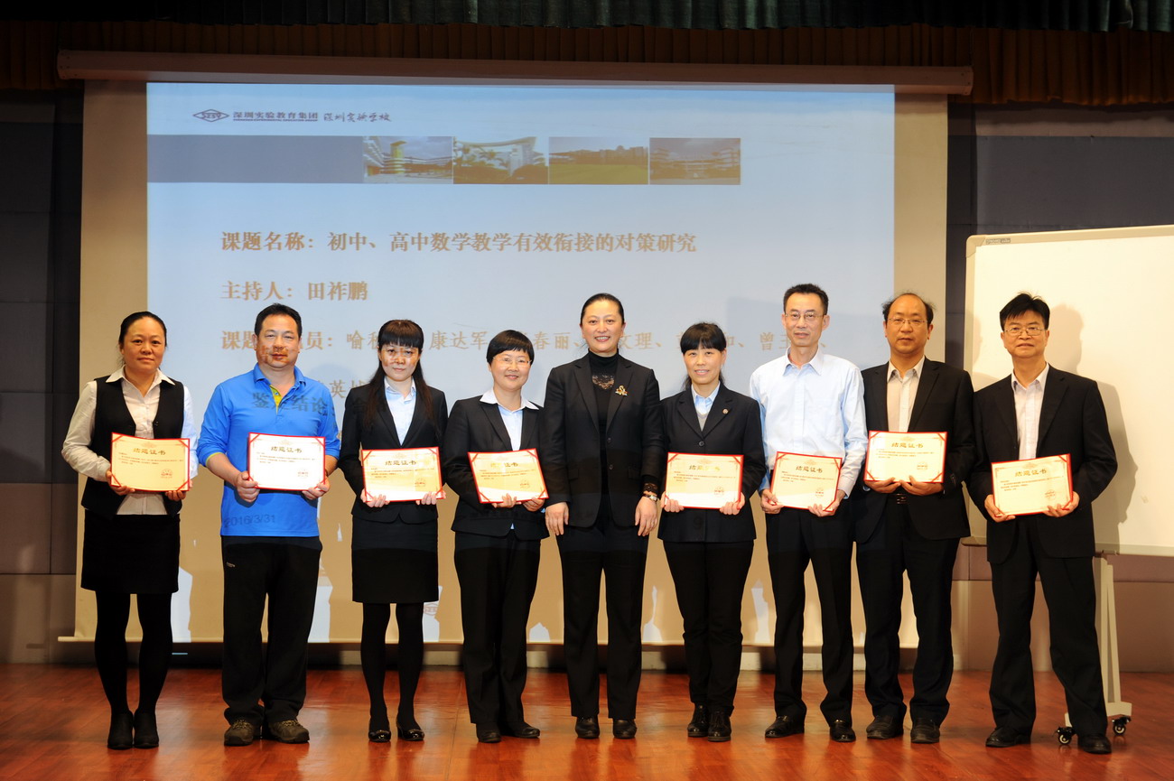 龙萍副校长和应邀来校作专题报告的首都师范大学吴晗清教授为19项校本教研课题颁发了结题证书。其中赵若英、叶伟生、程学军、刘蒙、刘绍家、邓旭、周德怀、刘月刚等8位老师主持的课题获得“优良”课题证书。林如元、杜云华、杨鹏、周洁、李莹洁、罗灿、李文广、田祚鹏、李震宇、陈少强、王建中等11位老师主持的课题获得“合格”课题证书。