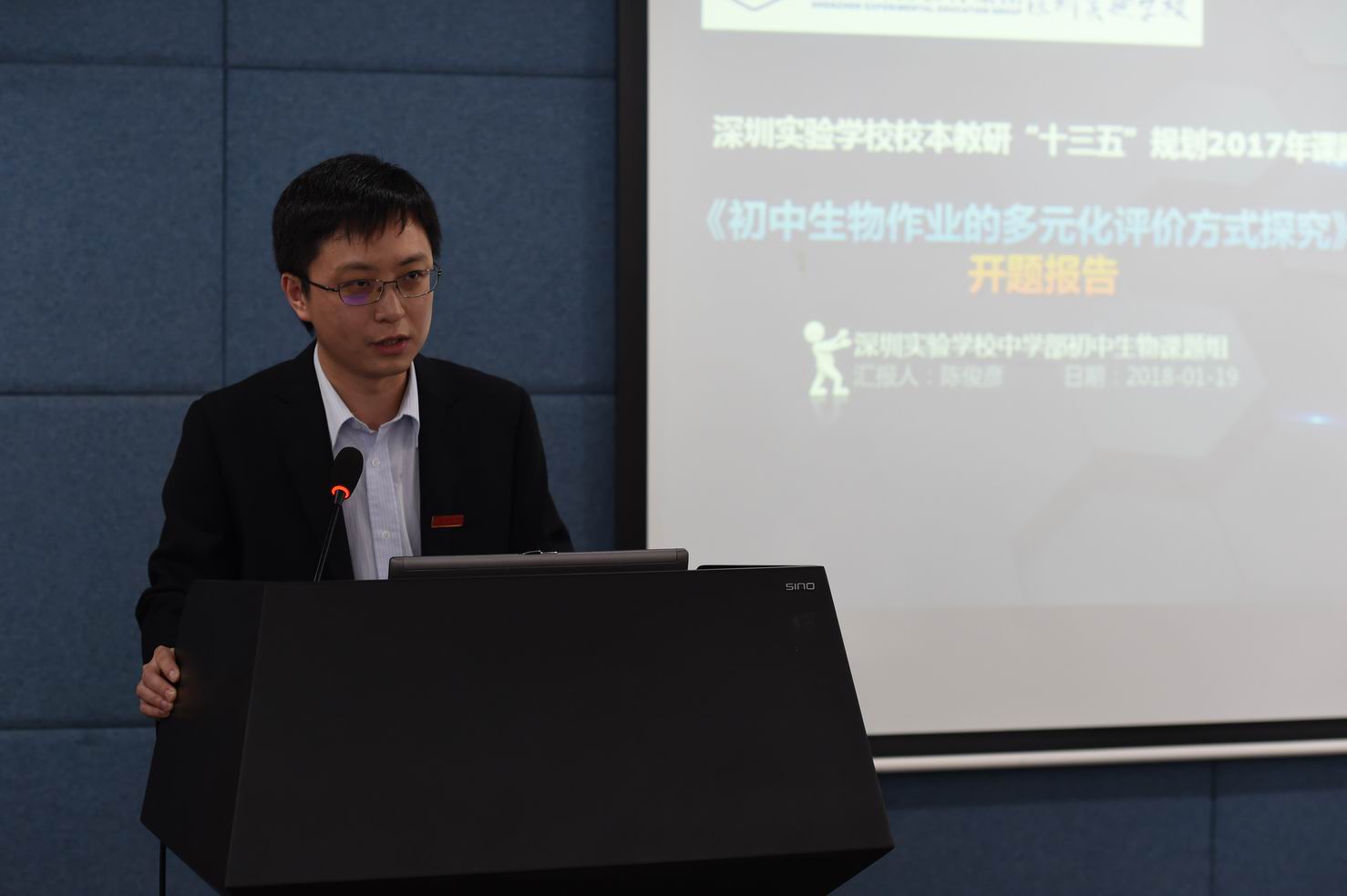 开题会上由集团教育教学部田国生副主任宣读深圳实验学校校本教研“十三五“规划2017年课题关于《初中生物多元作业的开发与应用》、《初中生物作业的多元评价方式研究》、《提升高中生人文学科阅读能力的策略研究》三个重点资助课题的立项通知。随后三个三个课题主持人从课题研究背景、国内外研究现状、研究的内容、方法、步骤等方面进行具体阐述。