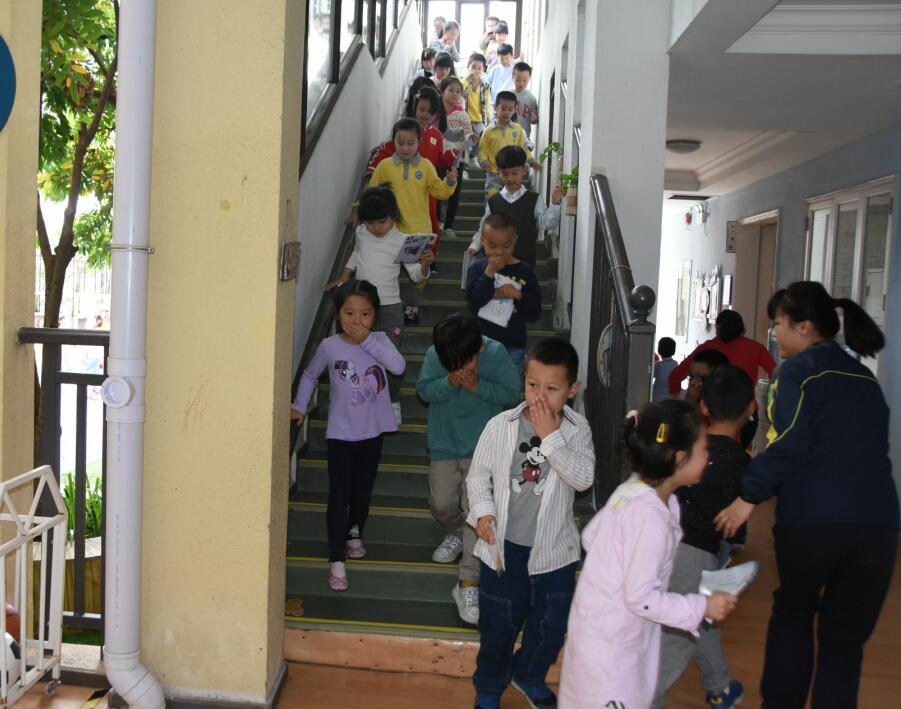 为提高师生遇到突发事件时的应变能力和自救自护能力,3月1日上午10点,随着紧急的警报声响起,消防疏散演练活动开始了。不论是正在进行户外活动的孩子们,还是正在教室进行区域活动的孩子们,听见警报声后,在老师的带领下,用衣物捂住口鼻,井然有序地沿着安全通道紧急疏散。整个消防演练历时2分16秒,全园师生全部安全撤离。