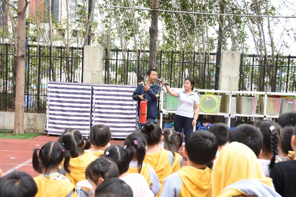 园长妈妈对本次消防演练进行了肯定与简短的小结,幼儿园安全主任向全体师生普及了消防安全知识,在互动中让全体师生巩固了对灭火器的正确使用方式。