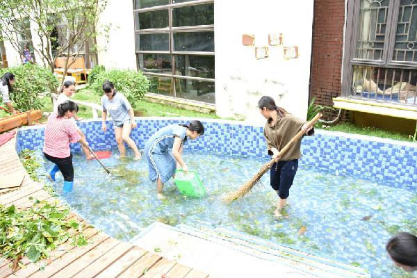 全园教工定期对公共环境进行清扫和整理,安全小组成员都会定期对幼儿园班级、户外、周边环境及设施设备进行全面的安全排查,为幼儿园安全工作提供双重保障。