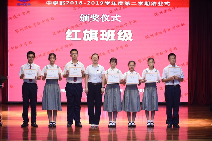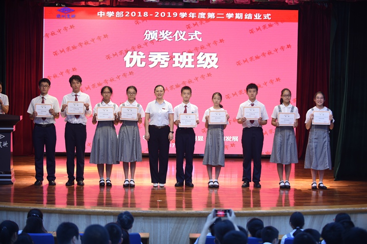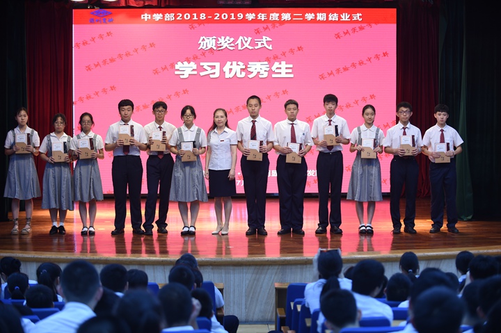 在高亢的国歌声中,结业式正式开始。首先,全体师生收看本学年中学部各项工作的总结纪录片《我们的一天》,创新的以时间轴的方式记录、回顾一学年里,关于学生管理、课堂教学、学生活动、后勤服务、工会活动等等各项工作,共同见证了实验教师的敬业专业,不断探索;共同见证了实验学子风华正茂,孜孜以求;共同见证了教辅团队和后勤服务人员的勤勤恳恳、精益求精。