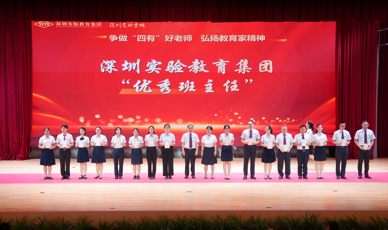 刘焱锋、刘晓利、王特、陈兆华、马春雨、丁伟、郑雪枫、王建周、蔡馥玲等419名老师被评为深圳实验教育集团“优秀园丁”,涂瑞倩、冯丰、王志强、秦哲、王凯、王燕、甘玉兰等91位教师被评为深圳实验教育集团“优秀班主任”,李笑梅副校长、张楠副校长、潘浩执行校长、王洪吉执行校长为他们颁奖。