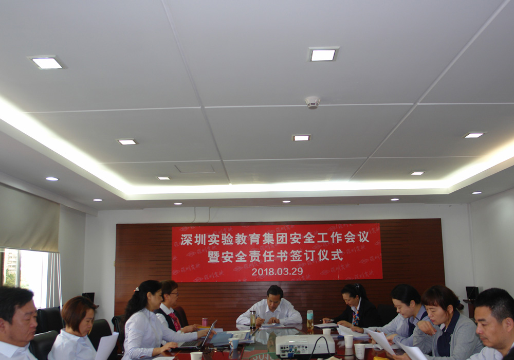 为贯彻落实国家教育部、省教育厅、市教育局近期有关学校安全工作会议精神,切实做好2018年度校园安全管理工作,3月29日上午,深圳实验教育集团在五楼会议室举行安全工作会议暨安全管理责任书签字仪式。集团安全管理工作领导小组全体成员出席了会议。