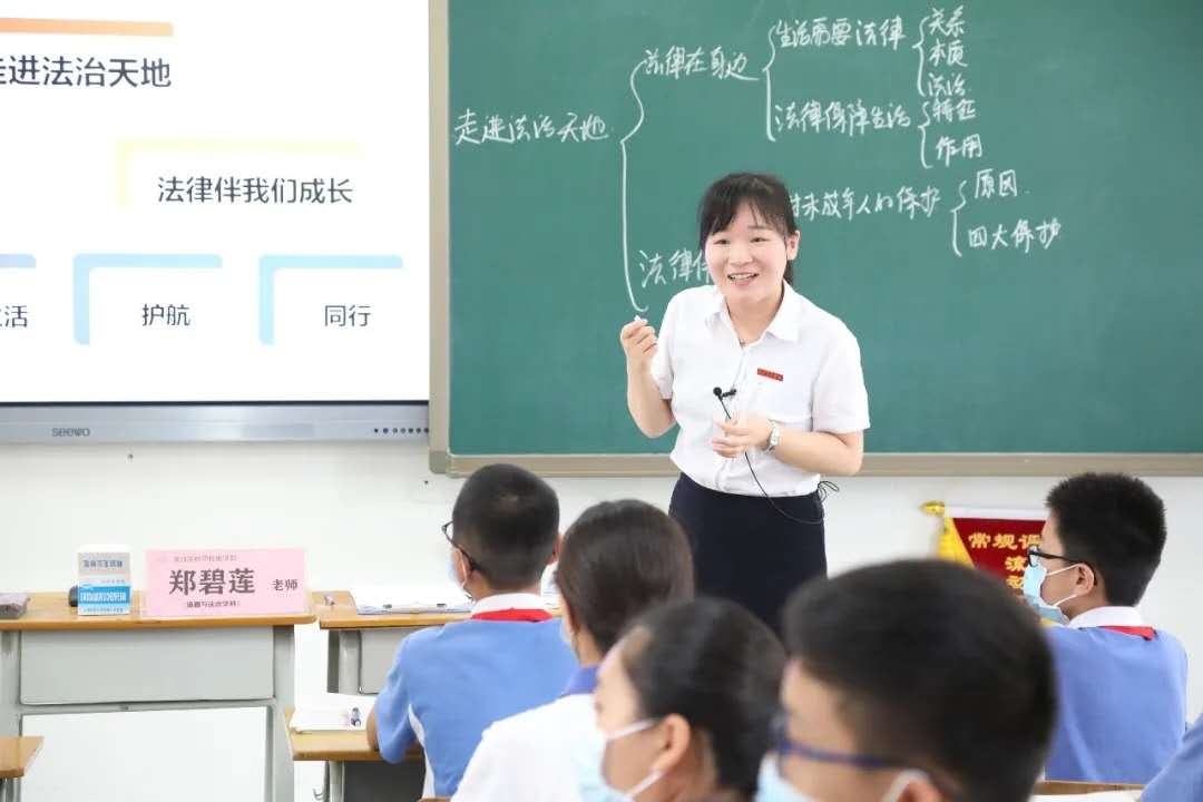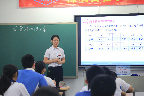 名师有“范儿”。17位送课教师,有荣获2019年第二届广东省中小学青年教师教学能力大赛初中数学组一等奖第一名的中学部唐丽艳老师;有韩国教育学博士,数学教育专业背景,立足严密的数学推导和建模的高中部迟菲老师;有阳光亲和,善于与学生互动,“聊天式”教学,把一个陌生的班级真正调动起来,课堂气氛高潮迭起的乔战胜老师;有北大高材生、来自初中部的余明发老师,不疾不徐、娓娓道来,追求“文本”与“生本”,以锤炼一节层次丰富的语文课为旨要;有激情奔涌,幽默风趣,能有效带动学生探究学习的初中部毛俊哲老师。还有一位特殊的顶课教师,来自坂田部的郑碧莲老师,她顶替中学部因身体原因无法按时送课的郑楚洁老师,在关键时刻,主动领命,上了一节《道德与法治》课,赢得了喝彩!