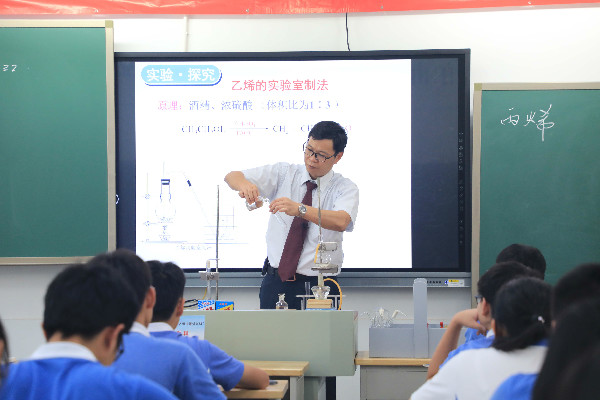 教学有“味儿”。17位送课名师,用精湛的教学设计和精彩的课堂呈现,给学生带来了不一样的教学体验。高中部封清华老师有着深厚的教学素养,课堂上旁征博引,驾轻就熟,收放自如。初中部杜文正老师连续三次送课到坂田,教学生长点频出,富有张力,课件精美,沉稳大气;江宏生老师的课注重科学精神与社会责任这一核心素养的落实,课堂上精心设计了乙烯制备实验,内容充实,处处充满了伏笔与呼应,使整个课堂结构显得紧凑且突破难点;宋泽红老师从生活中抽象物理模型,再反过来应用物理解决生活中的问题,重在培养学生分析问题和解决问题的能力,整节课非常注重创设情景和启发式教学;赵徽星老师的课堂则体现出鲜明的整体性、时效性、有效性、针对性特征,即40分钟完整呈现,并在对比中找异同,提升时效;高中部张简老师课堂上巧妙设问、循循善诱又层层深入,让学生如沐春风,感受到地理学独特的魅力;庄瑞丹老师的课集生动性、丰富性、层次性、知识性于一体,聚焦英语学科核心素养,有效地达成了既定的课堂目标,小组合作成果展示,学生们自信飙英语,英语教学的新课改理念已经落地生根。梁宏老师用高质量的图文史料与前沿的学术成果,带领学生层层深入探究,处理好了历史课堂中讲故事与讲道理的关系、宏大叙事与情景教学的关系、掌握知识与发展能力的关系,以及学术体系与价值引领的关系;帮助每一个学生挖掘自己学习潜能的周灵玲老师,积极构建“创新、有效、有趣”的教学风格,一堂课给学生带来“三新”体验:新的智慧,新的教材观,新的设计理念。李博峰老师,整堂课把枯燥的物理计算带入故事中,以“物块的故事”为线索,在讲述故事的开端、发展、高潮和结局中,层层递进引导学生在解题过程中总结规律,重视学生思维能力和思维品质的培养。工作刚满两年,即获得初中部2019年度青年教师“风采大赛”特等奖的李茜雯老师,在试卷讲评课中,另辟蹊径,将讨论和分析题目的权利还给学生,针对本学期重点内容挑选了8个典型题目,设计8个讨论小组,把学情、学生、学习统摄起来,让学生完成了整本书知识体系的自主构建。