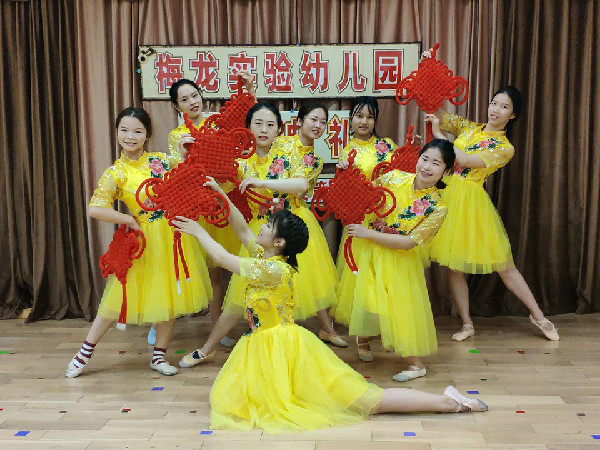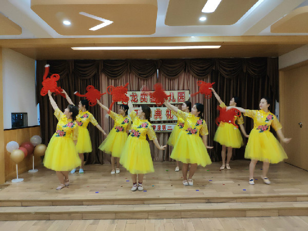 一根根红红的线,连成红红的结;一张张红红的笑脸,撑起了红红的天;一个个红红的心愿,画出了好多红红的圈;一个个红红的圈,连成红红的中国结。老师们利用中午和下班后的时间排练舞蹈,用她们优美的舞姿表达了对孩子们真诚的祝福!