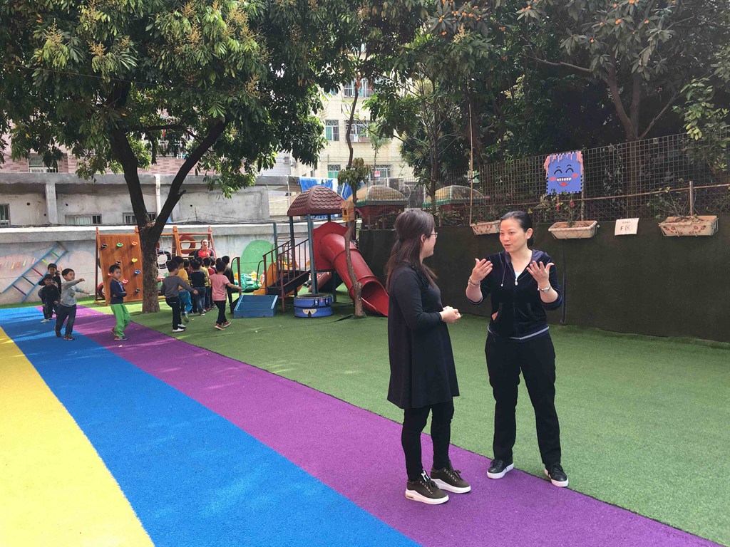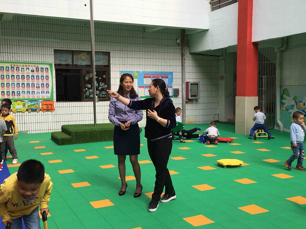 富鑫幼儿园教学园长梁园长从日常管理、保教工作和资源三个方面给大家分享了幼儿园受帮扶的历程,用大量的照片跟大家展示了受帮扶以来活动室、户外游戏区的改变和老师的成长。