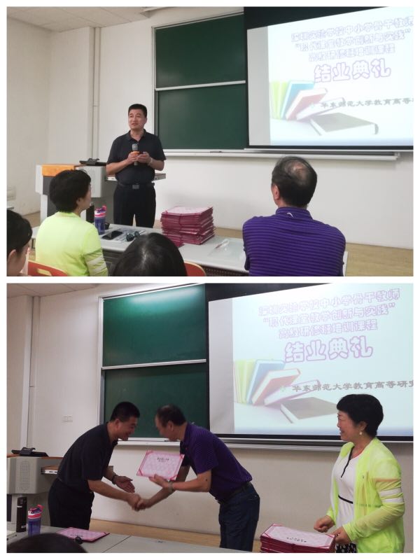 在结业仪式上,唐主任为老师们指出努力的方向,要充满自信,不断学习,认真做好研究,在教育教学中,要善于发现问题,分析问题,解决问题,提升理论修养,从而成为一名真正具备课堂创新与实践能力的教师。王喜峰主任代表老师们,对唐主任的支持与鼓励表达了谢意。王喜风主任强调,学习之旅结束,教师的专业成长之旅才刚刚开启,教师的专业学习要跟上时代的变化,跟上学生的变化,跟上教育的变化。