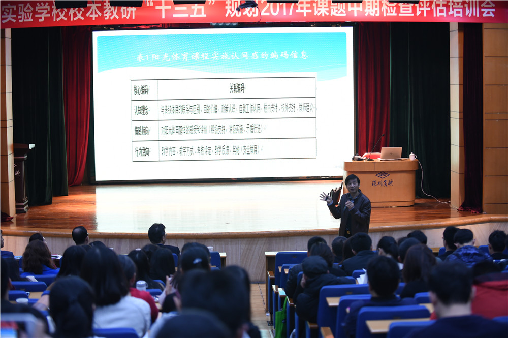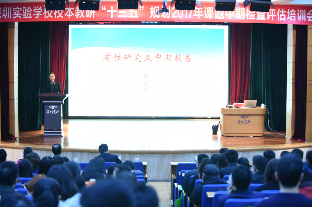 2019年1月16日上午,深圳实验学校校本教研“十三五”规划2017年立项课题中期检查评估培训会在中学部五楼小礼堂举行。龙萍副校长主持大会。本次活动由集团教育教学部主办,特邀深圳大学师范学院副院长李臣之教授前来主讲,来自全校各学部的教务(研室)主任、课题主持人、课题组成员、教研骨干等150余人参加了此次培训。