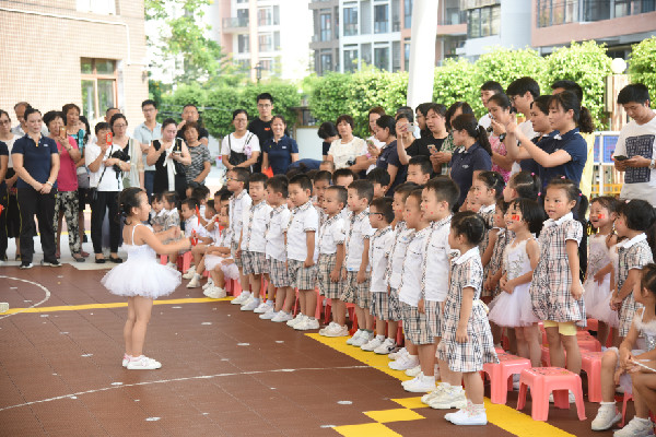 中班组幼儿代表带来的舞蹈《我爱你,祖国》,小朋友们通过天真烂漫的舞姿向祖国献礼,表达对伟大祖国的热爱和祝福。随后,进行的是唱红歌展演活动,各年级与班级分别通过唱国歌、传唱爱国主义歌曲,用悦耳的声音为祖国献声,献上自己对祖国诚挚的祝福,挥洒着属于他们内心的小小爱国情。