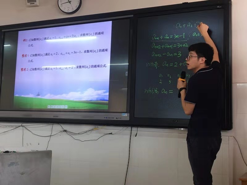 徐尤清老师执教高二数学“递推思维下的数列通项公式”一节课,讲授了求解数列通项公式的重要方法——递推方法,包括累加法、累乘法、待定系数法等。徐老师通过回顾等差、等比数列定义,典型例题讲解,层层深入,归纳总结,引领同学们拓宽解题思路,提升数学思维。徐老师清晰的思路、严谨的推导、系统的讲解,得到听课师生们的高度认可和一致好评。